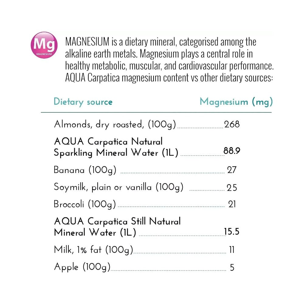 AQUA Carpatica is drawn from two pristine and pure aquifers, nestled deep in the heart of the untouched Carpathian Mountains. Through a natural 20 to 40-year filtration in a location with no agriculture or industrial activity in the surrounding areas, AQUA Carpatica's source is protected from chemicals, fertilizers, CFCs and other contaminants, meaning it is simply as natural mineral water should be; virtually nitrate free, with a crisp and refreshing taste that provides perfect purity and nourishment from the first drop to the last.