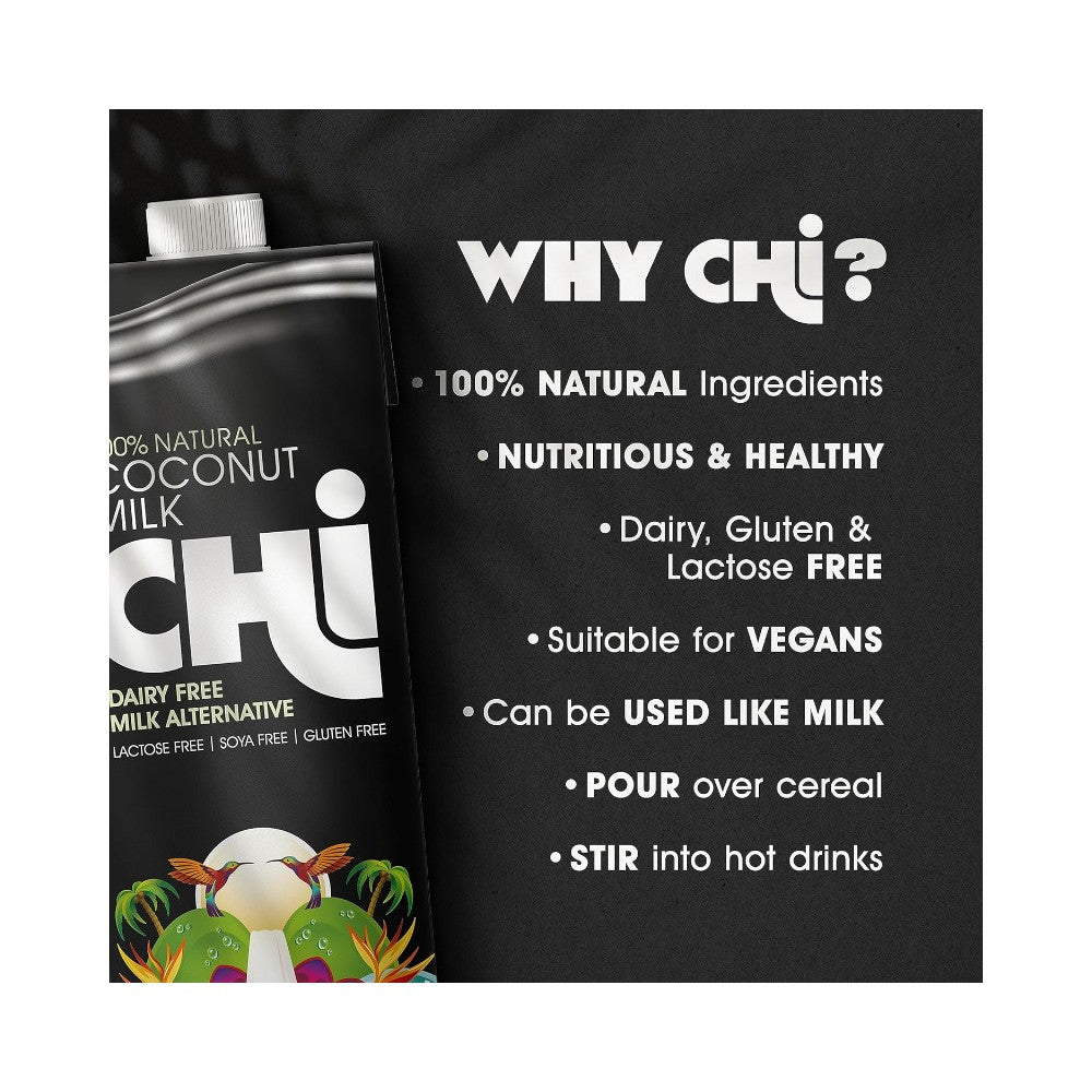 Chi 100% Natural Coconut Milk is an ideal alternative to dairy milk. Made by pressing fresh coconuts, Chi uses only natural ingredients.