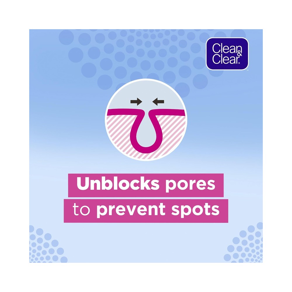 CLEAN & CLEAR Exfoliating oil free Daily Wash, 150ml for clean, clear beautifully smooth skin. Clean an damp; clear exfoliating daily Wash contains gentle micro-beads which effectively remove dirt, oil and dead skin cells that can block pores and lead to spots and blackheads. Its gentle exfoliating action will leave your skin beautifully Smooth and clear. It cleanses your skin gently but effectively to remove everyday build-up of oil, dirt and grease. It has oil-fighting formula to prevent spots. It is totally effective as a single-step cleanser to clean thoroughly and help prevent spots.