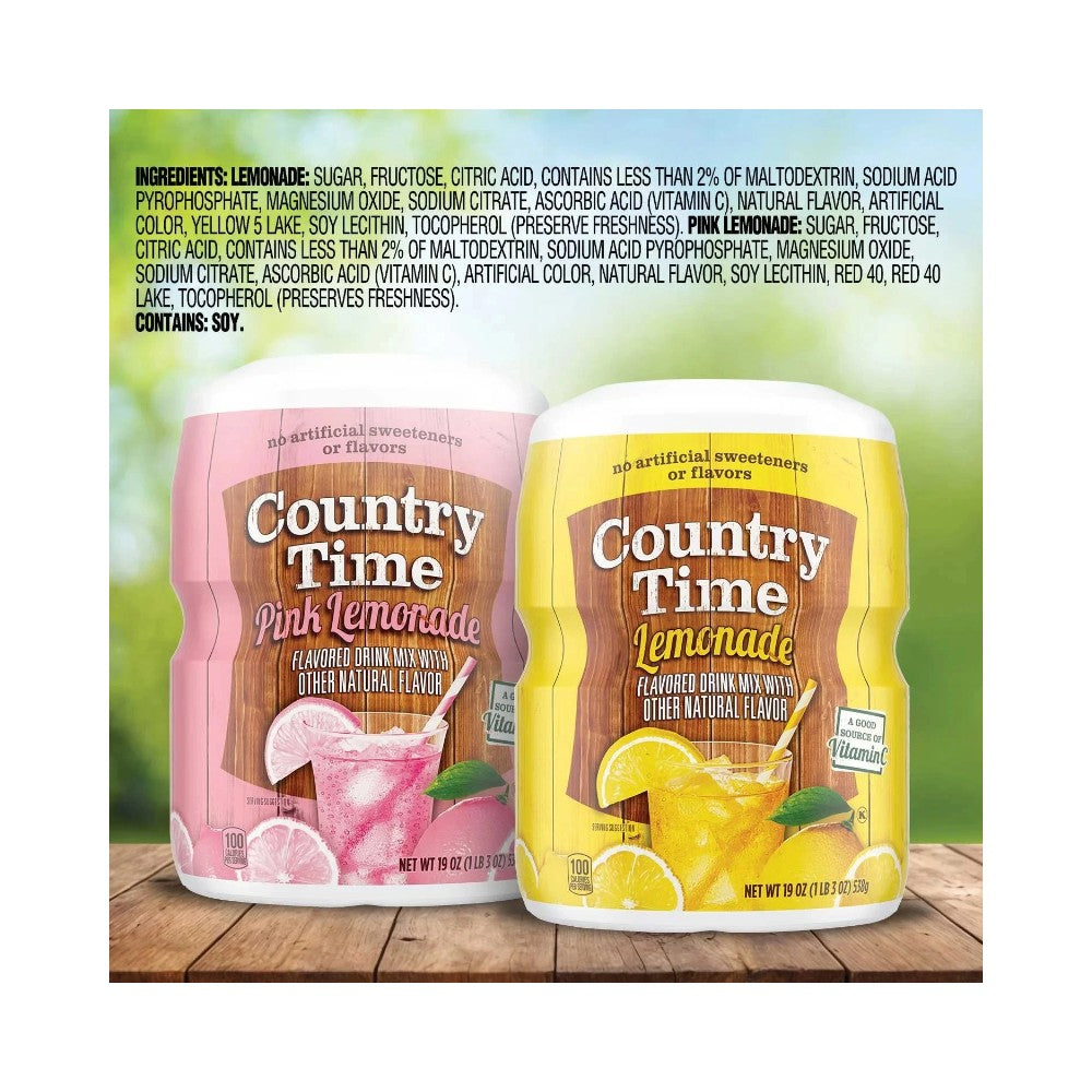 Enjoy the great taste of summertime with the good old fashioned refreshment of Country Time Lemonade and Pink Lemonade. Cool and refreshing--not too tart and not too sweet. And did you know that Country Time Lemonade has no Artificial Sweeteners, or Flavors? So go ahead and take time for summer's simple pleasures, mix up a pitcher and enjoy!