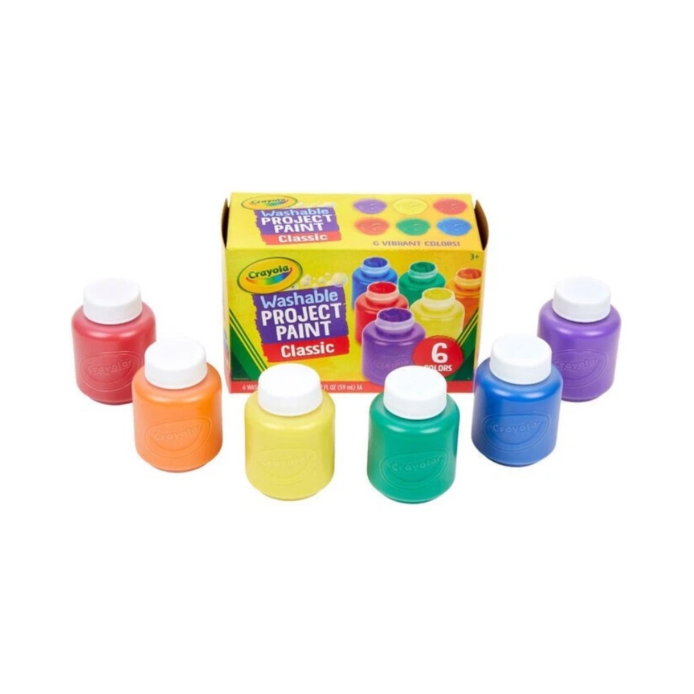 Make, create, and decorate with this Washable Paint Set for kids. Crayola Washable Paints are nontoxic and great for arts and crafts, plus school projects. And the Washable Kids Paint washes from skin and most washable clothing! Includes 6 (2 oz) Paint Bottles in assorted bold colors.